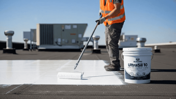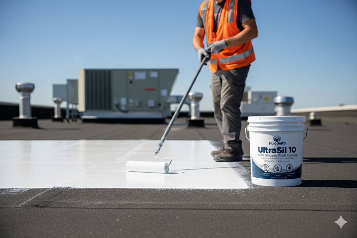 UltraSil 10 is a single-component, moisture-cured silicone coating engineered specifically for commercial flat roof restoration.