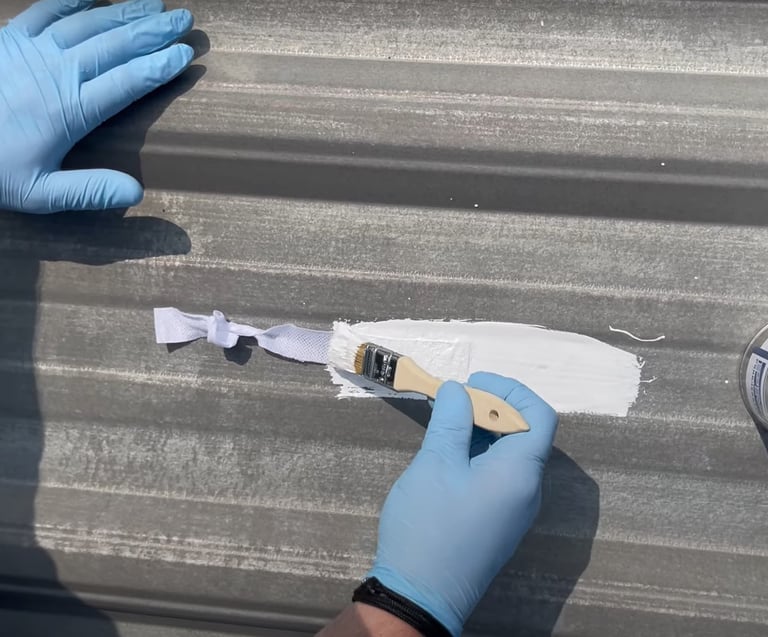 High-solids silicone coating applied at specified mil thickness to create a seamless waterproof membrane.